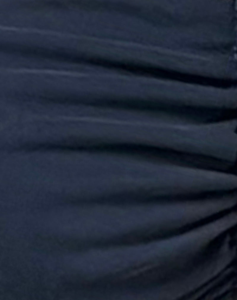The Alohi bralette in ocean storm cupro fabric. Featuring a tie halterneck and skinny cami straps, detailed with ruching on the cups. Complete with a stitched-down drape design down the centre front. Pair with the Donata trousers to match.