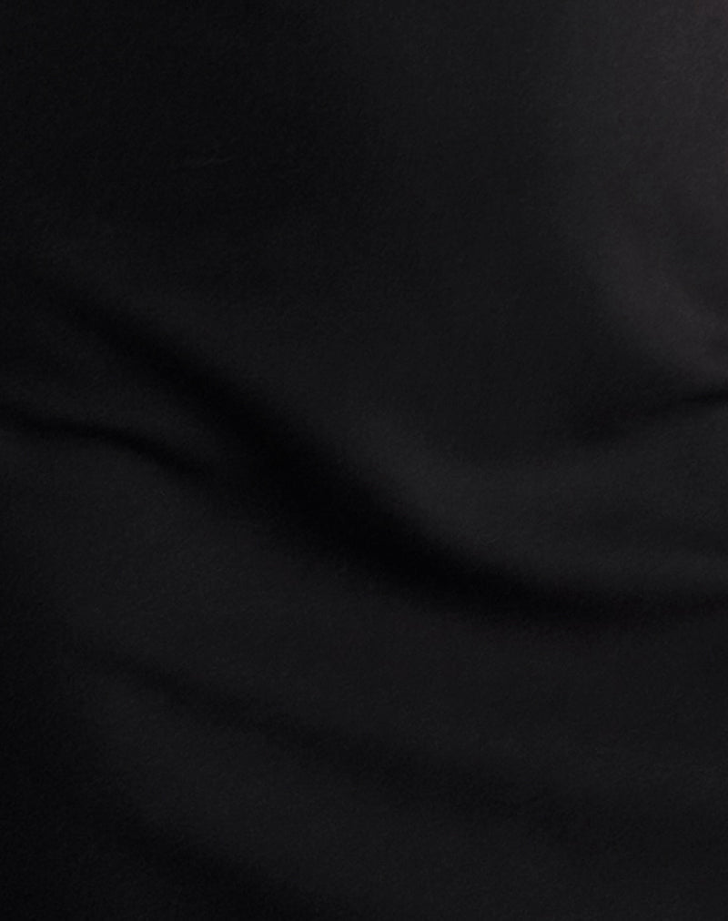Our Asinel dress in a black woven fabric features a thin strap bodycon design with a mini length. Complete with square neckline featuring deep V split cut out and ivory bow detail at centre front.