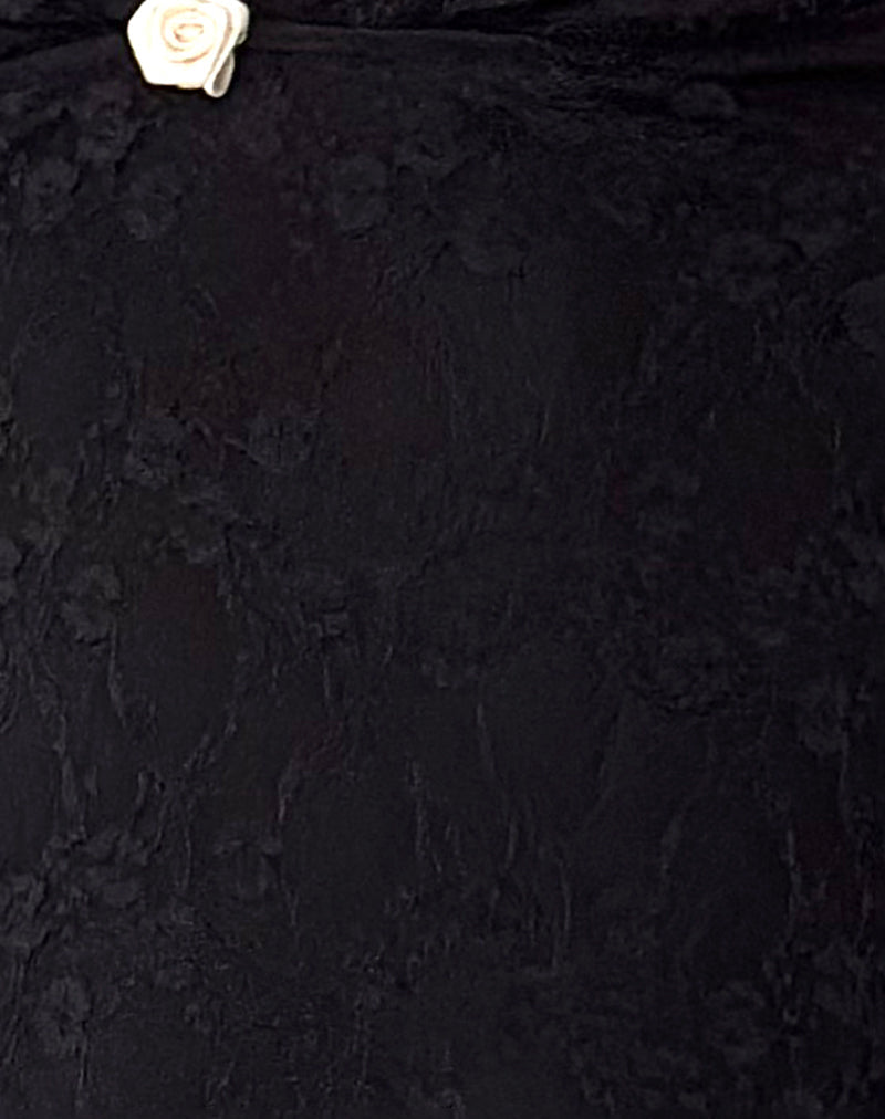 Bodycon maxi dress with halterneck design and deep v neckline with a ivory rose decal in centre. Complete in a black all over Canina lace with a black jersey lining.