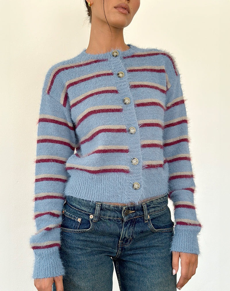 Audrina Cardigan in Blue and Red Stripe