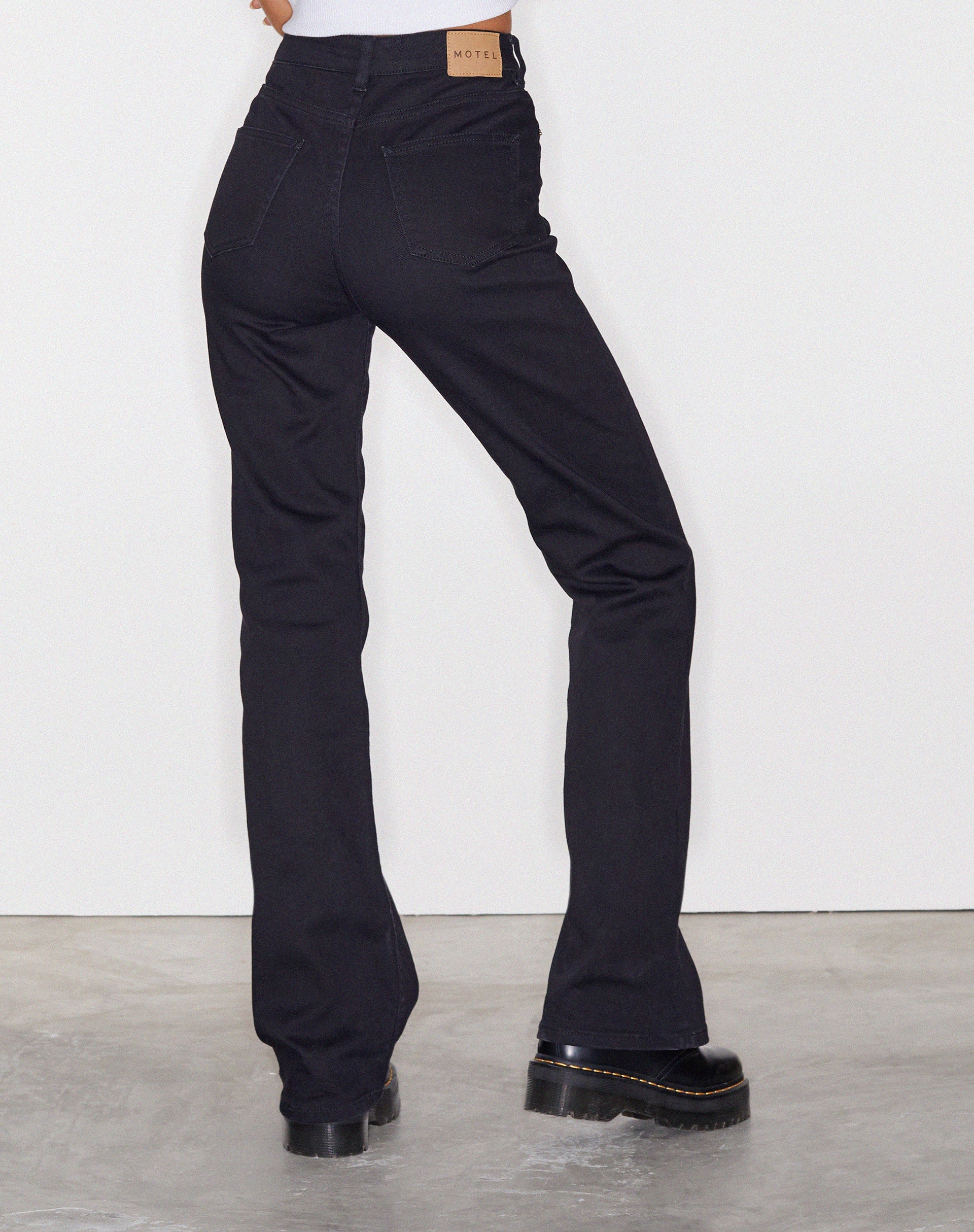 Update your denim collection with our bootleg jeans. Featuring a high waisted bootleg fit with button fastening in black. Complete with our Monsieur crop top in london fog.
