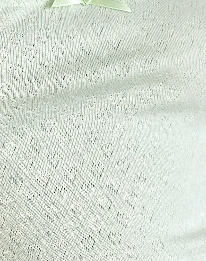 In a mint soft rib fabric, the Bovillo top features a regular fit and cap sleeves. A square neckline with lace trim, finished with decorative centre front bow. Pair with our low rise Skater shorts.