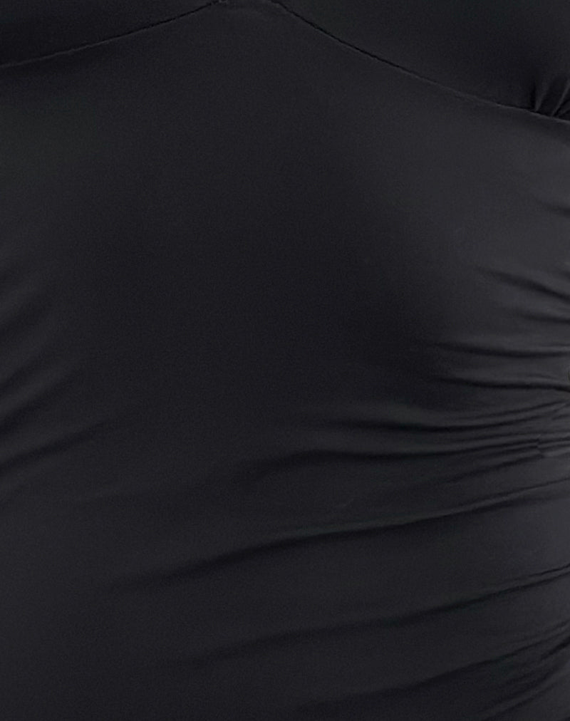 Carmila Gathered Mini Dress in Jersey Black
