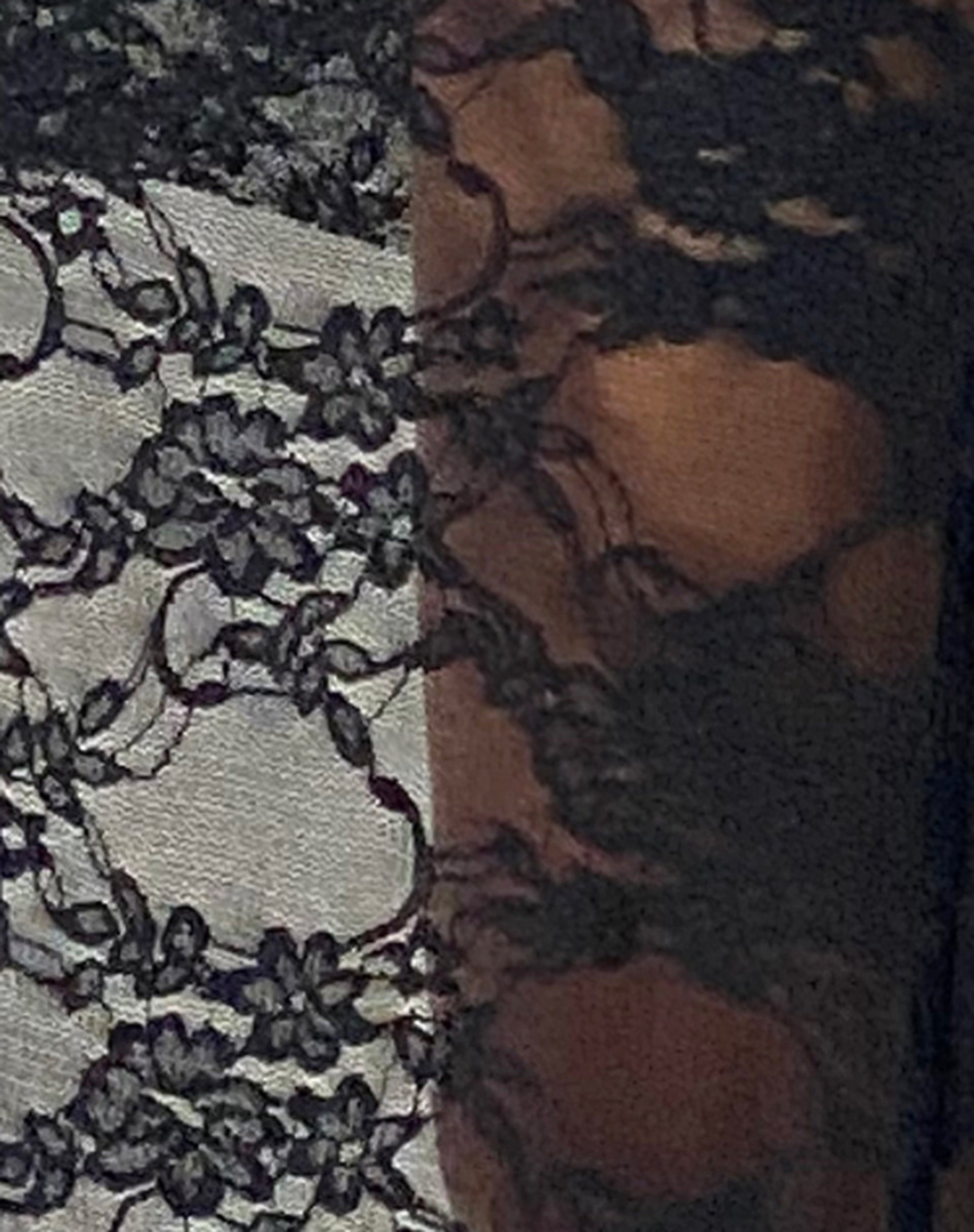 Daniella Unlined Asymmetrical Midi Dress in Abstract Lace Black