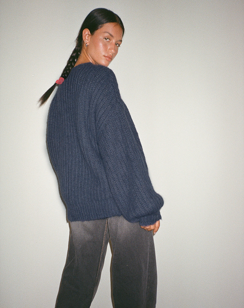 Daren Oversized Knitted Jumper in Navy