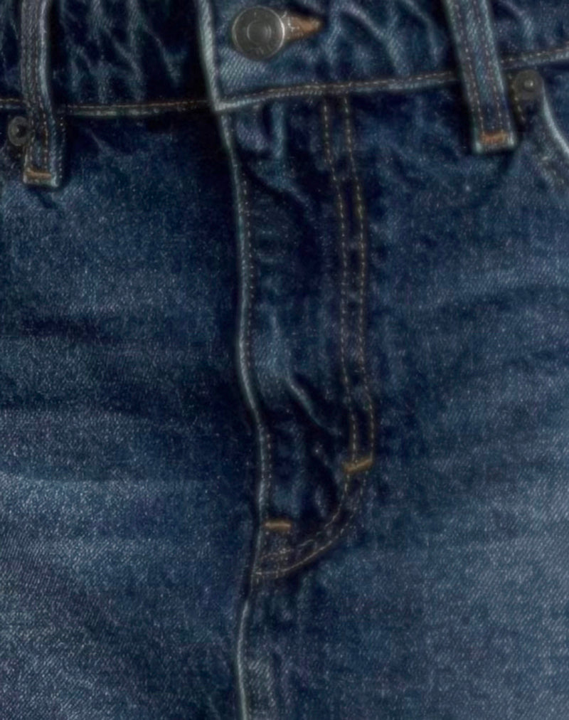 In mid blue used, this denim skirt features a mini length, a-line hem with a raw edge and a low rise fit with a zip and button fastening. Paired with our Jojes top.