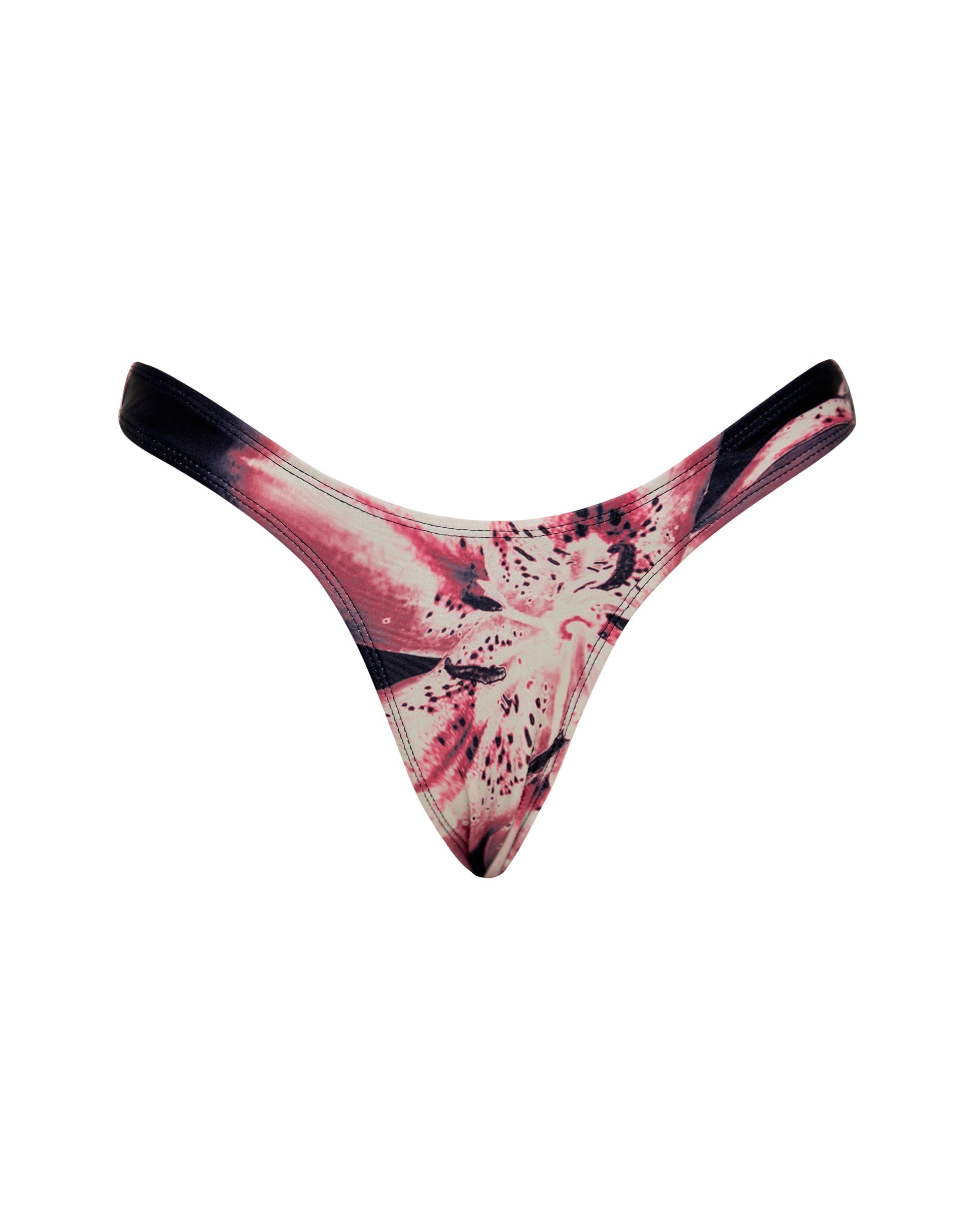 Our Farida bikini bottoms feature a low rise fit and come in deep pink and black print. Pair with Laufey top for the perfect set. Due to the nature of the fabric, some patterns on the bikinis may vary.