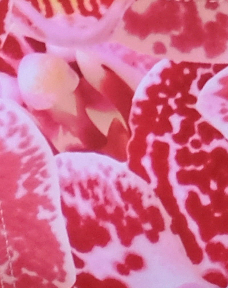 Low rise bikini bottoms with a high leg shaping in an all over abstract pink orchid print cut from stretch swim spandex made from recycled materials. Style with the matching Cerry top.