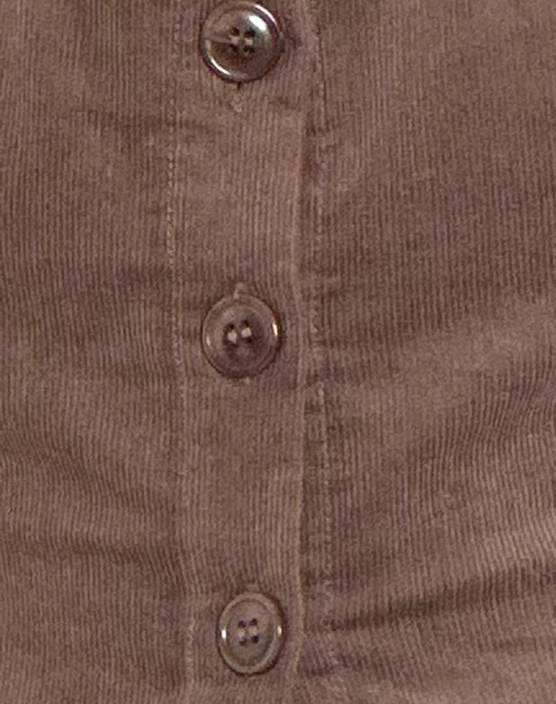 The Ganita vest in babycord brown. Featuring a scoop neckline, thick straps, a functional centre front button opening and finished in a tight fit. Complete the look with our matching Wiluta shorts.