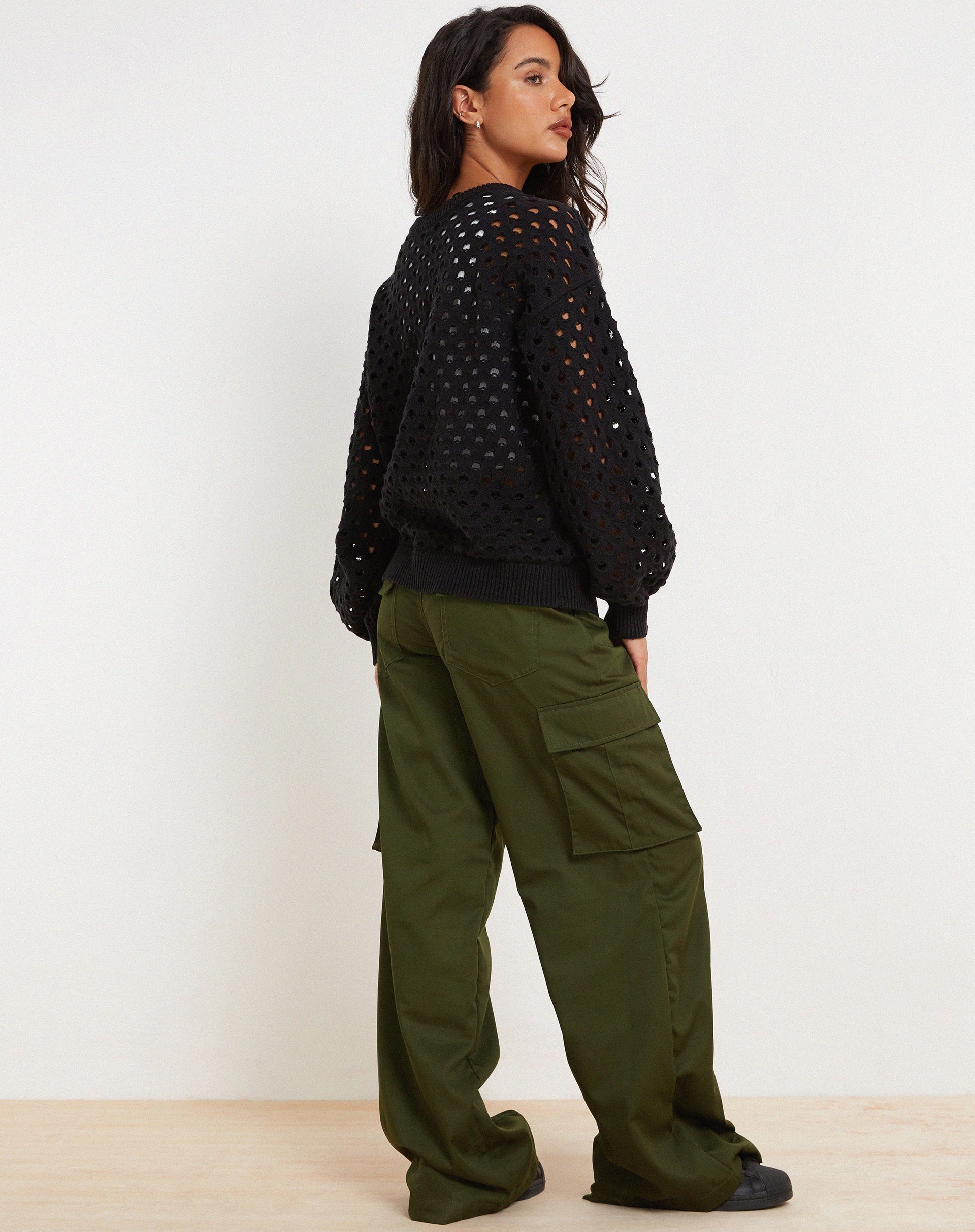Autumn styling is easy with the Jamin jumper, it features long sleeves, a crew neckline and hole details in black. Finish the look with the Hansa cargos in dark olive.