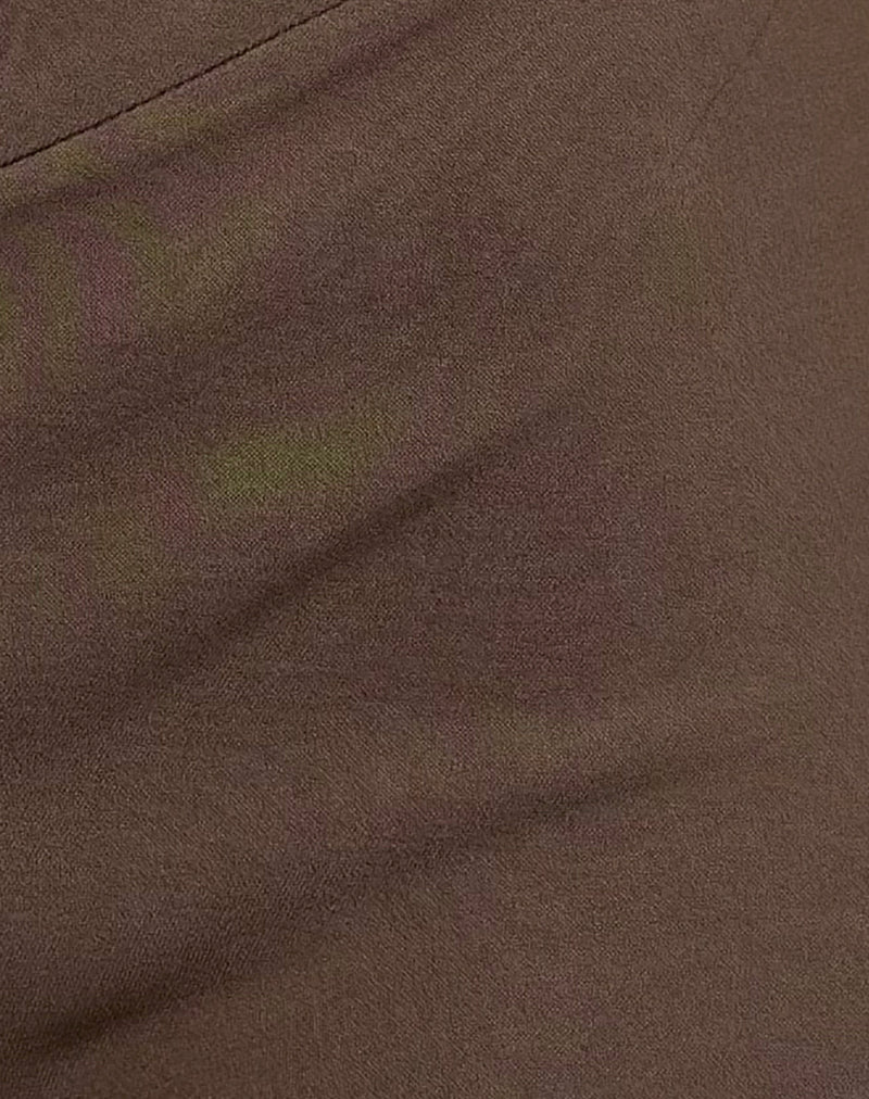 The Jarelia shorts in brown stretch tailoring features a micro short fit with a low-waist design. The waistband is embellished with eyelet detailing, and it includes a concealed side zip for a seamless finish. Style with the matching Janae top.
