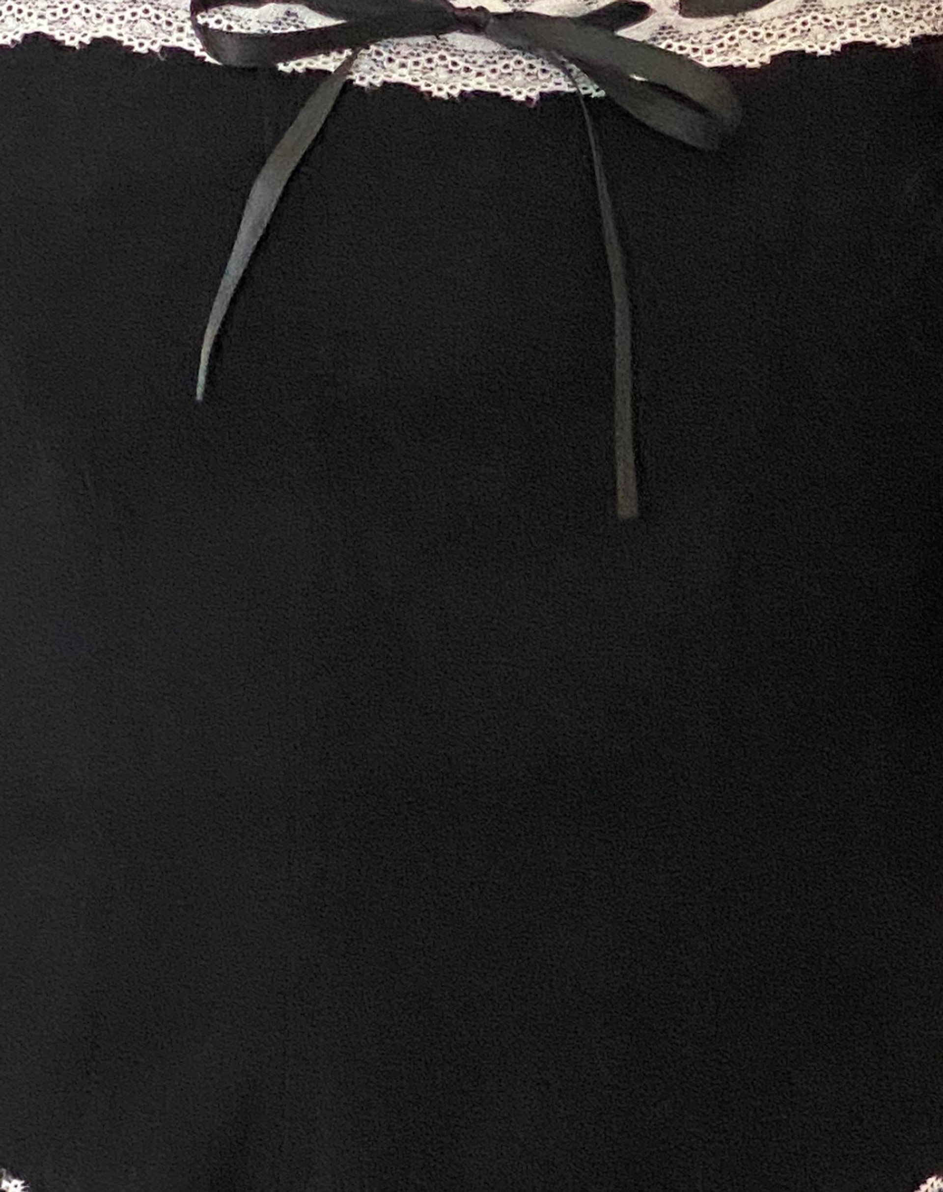 Cropped bandeau corset top in black with white lace trimming along the neckline and hemline. We love to style with our Cinta skirt.