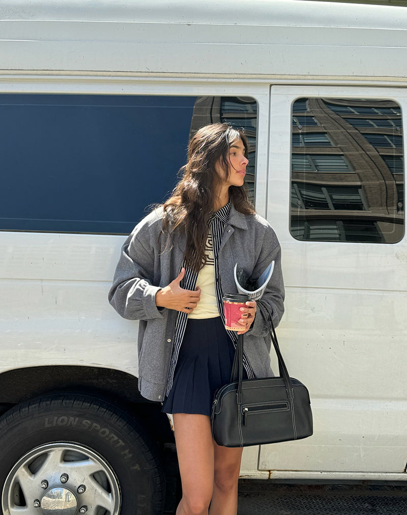 The Karinta Jacket composed of Marl Grey Wool features an oversized fit with cuffed sleeves. Finished with concealed zipper and collar detailing. Paired with our Cida mini skirt.