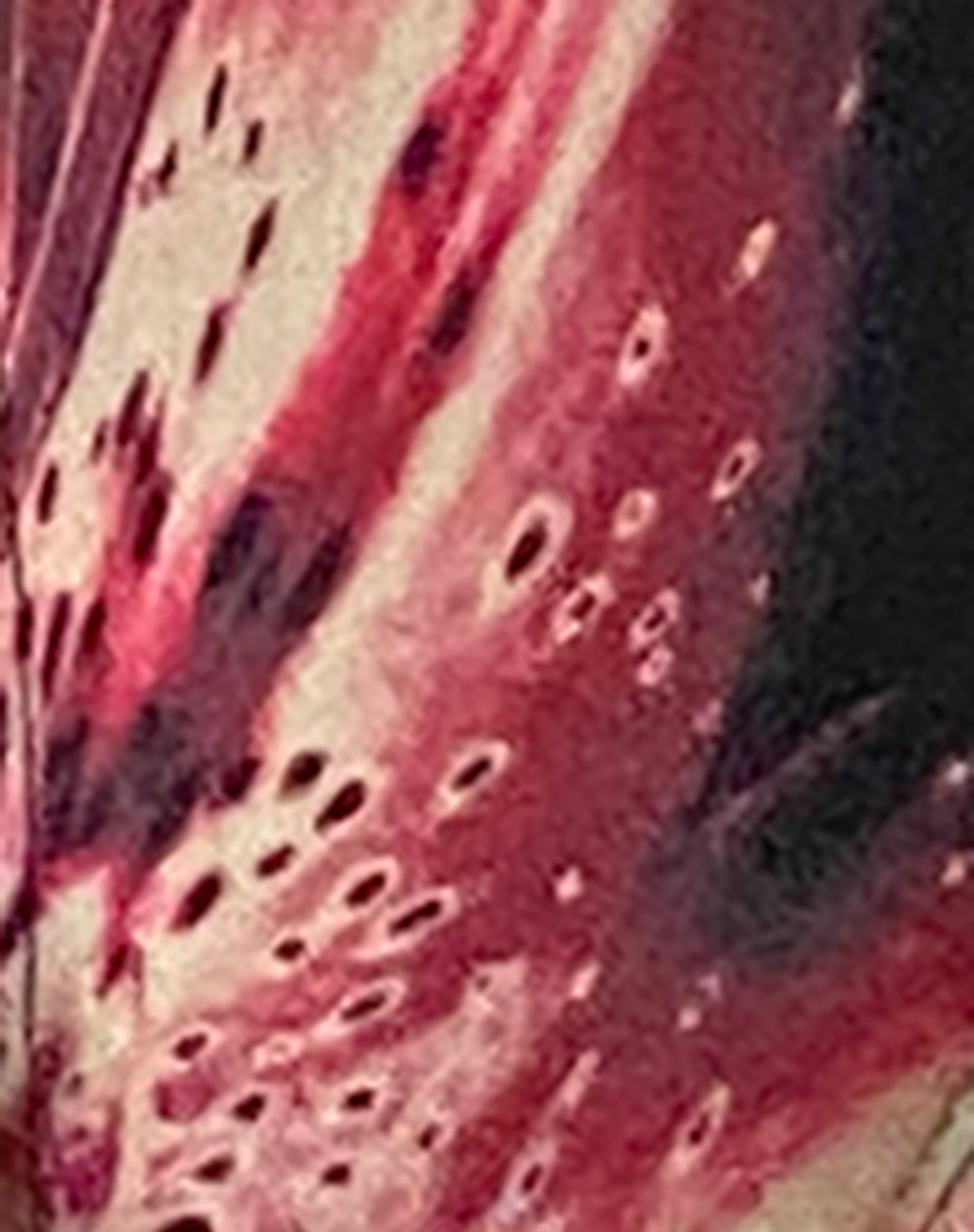 Super low rise Brazilian cut bikini bottoms with adjustable ties at each side on a black base with a large scale placement floral print in deep pink tones. Pair with the matching Pami bikini top. Due to the nature of the fabric, some patterns on the bikinis may vary.