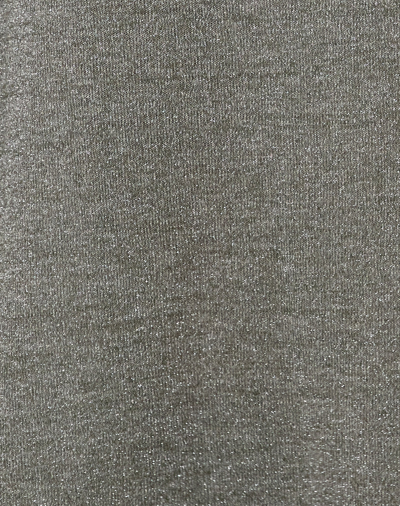 The Luciara midi skirt in khaki shimmer glitter knit features a mid-rise fit, a flattering ruched waistband, and a high slit. Complete the look with our Reni top.