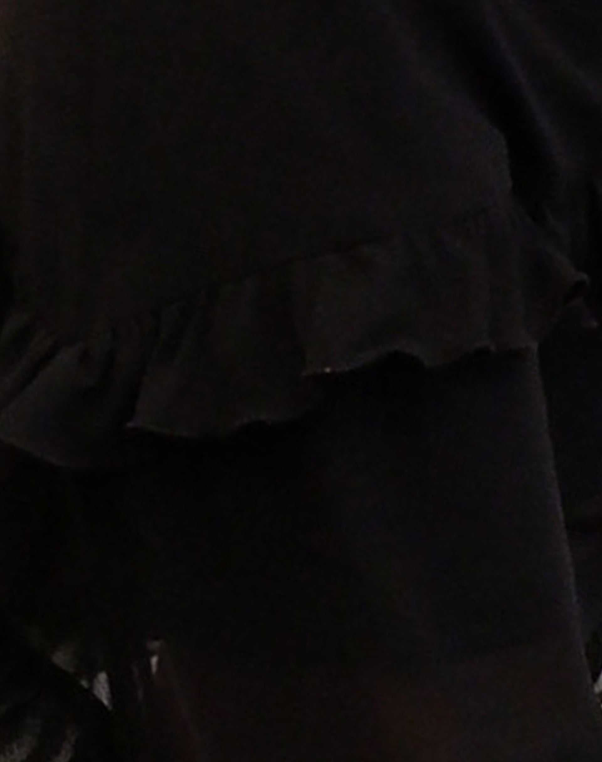 Margaret Ruffle Mini Dress in Black Chiffon with Rosette