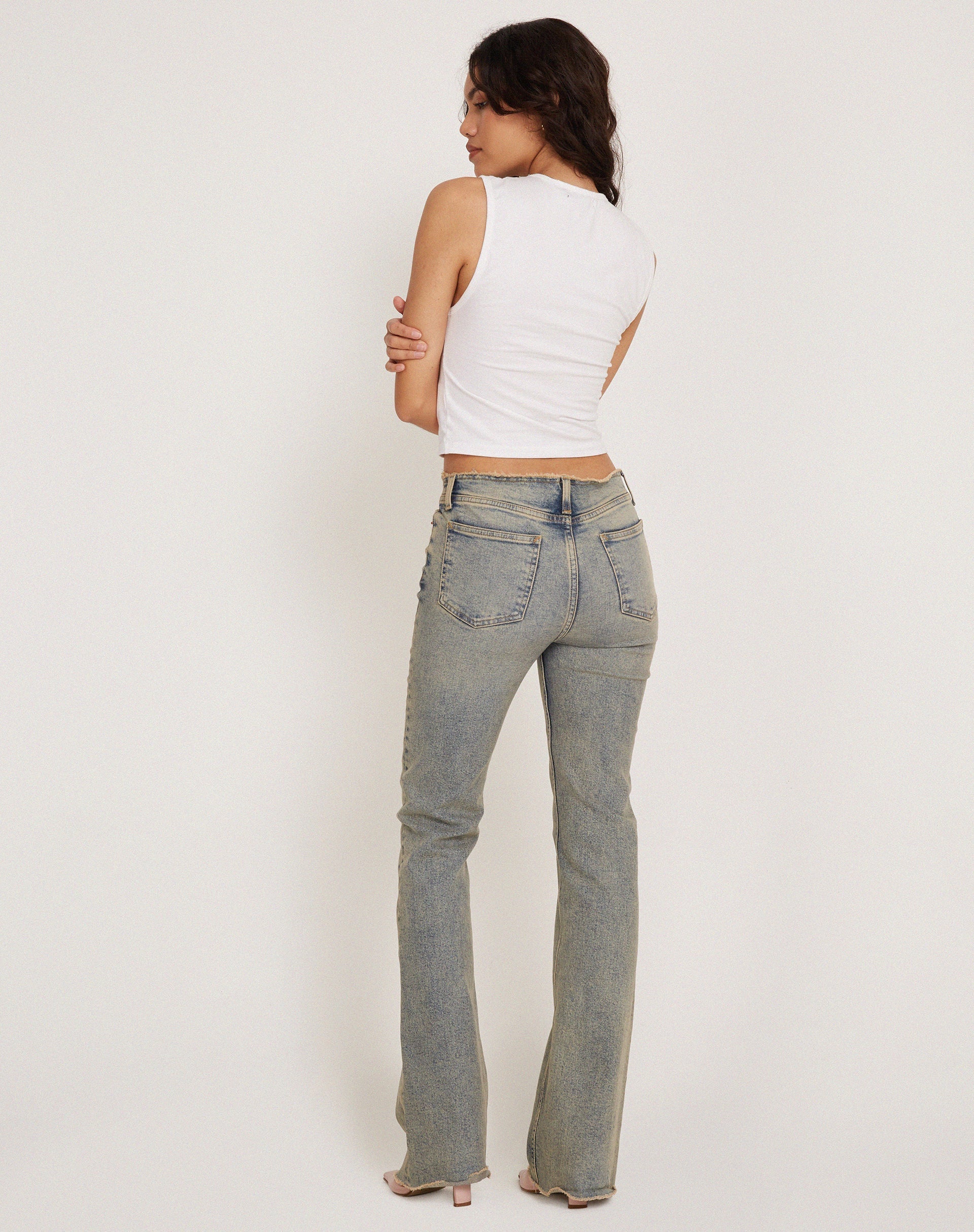 The Monlo Top is a white high neck vest with a cropped fit, featuring a pink corset print. Pair with our Low Rise jeans.
