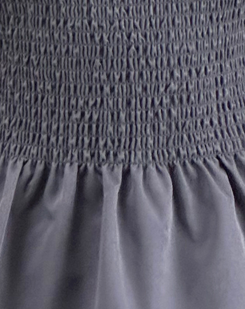 Our grey Notina top features a shirred grey material and puff sleeves. Complete with a peplum hemline.