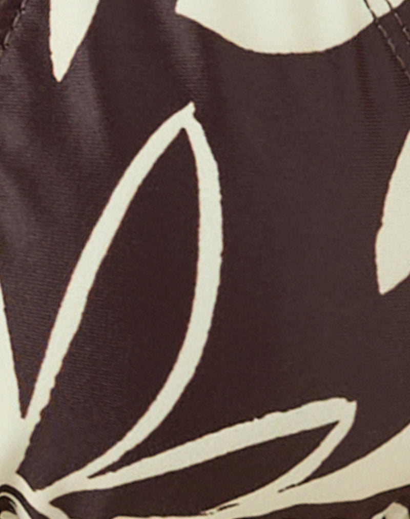 The Pami halterneck bikini top features adjustable ties at the neck and the back, in a brown and ivory doodle swirl print featuring beads on the tie. Pair with the matching bottoms, Lentra.