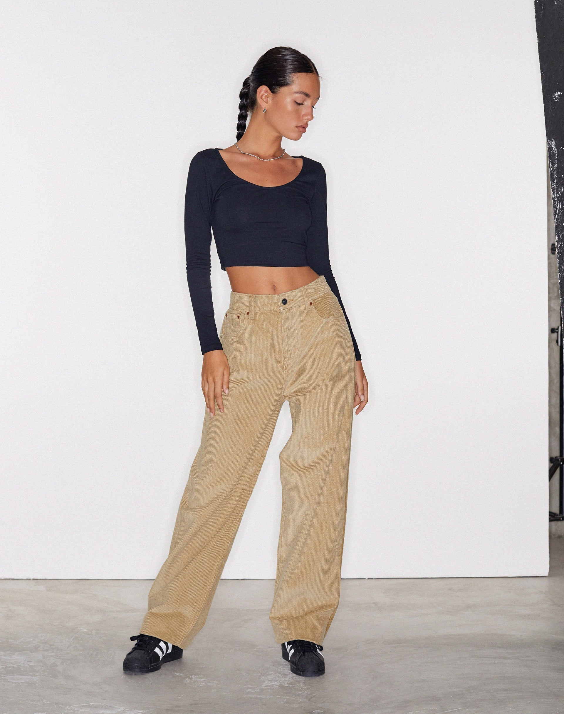 Corduroy is such a trend rn! Our Parallel jean trousers come in a light brown 'sand' cord and feature a 90's wide leg jean, high waist, zip fly fastening and pockets. Wear with your fave basic top.