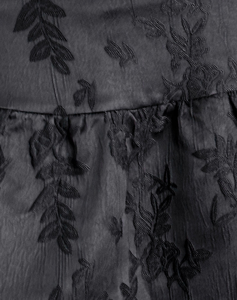 Raffita Mini Skirt in Satin Jacquard Black