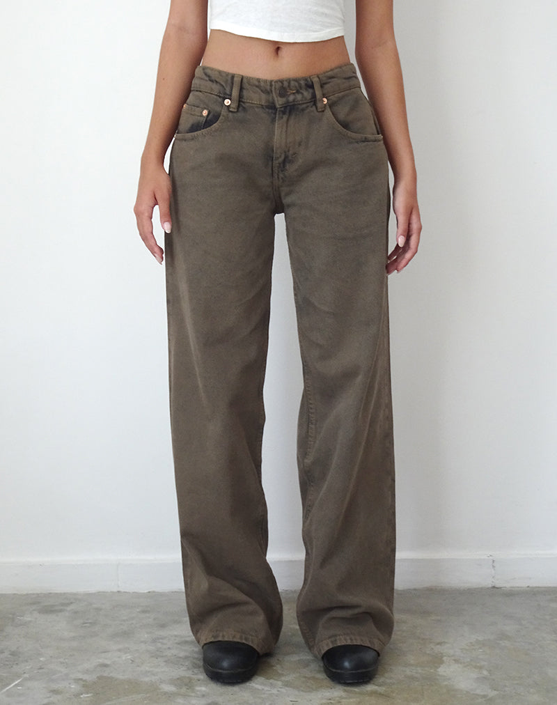 Our bestselling Roomy jean boasts an oversized, low rise, wide leg fit with a clean hem in a dark black sand denim. They feature a zip and button fastening and pockets, finished with a branded back tab, button and rivets.