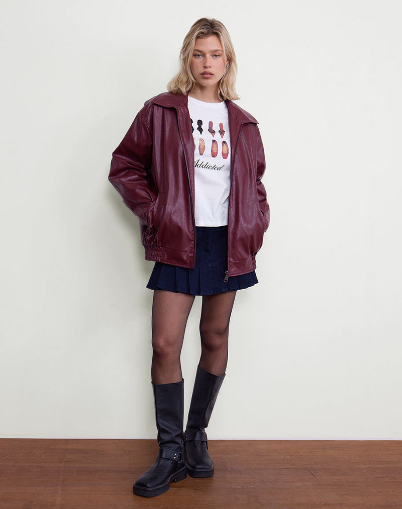 Loose fit short sleeve tee featuring a crew neck and regular length in white with shoe's print and 'addicted' script in black. Pair with our Laduma mini skirt.