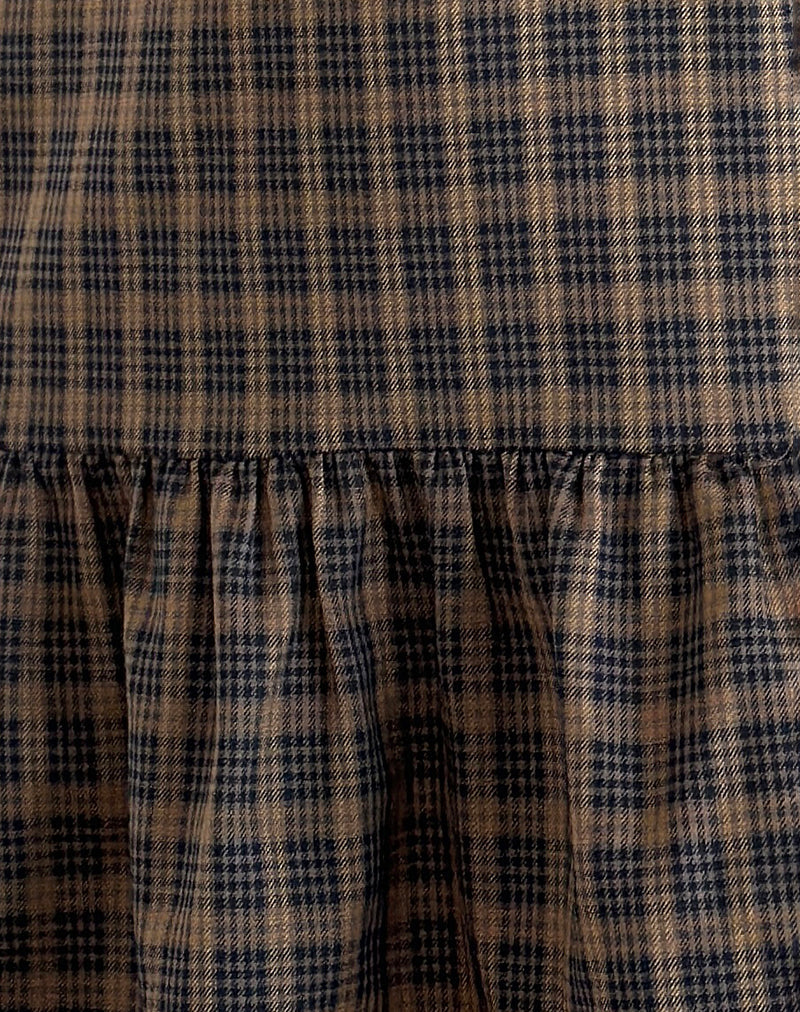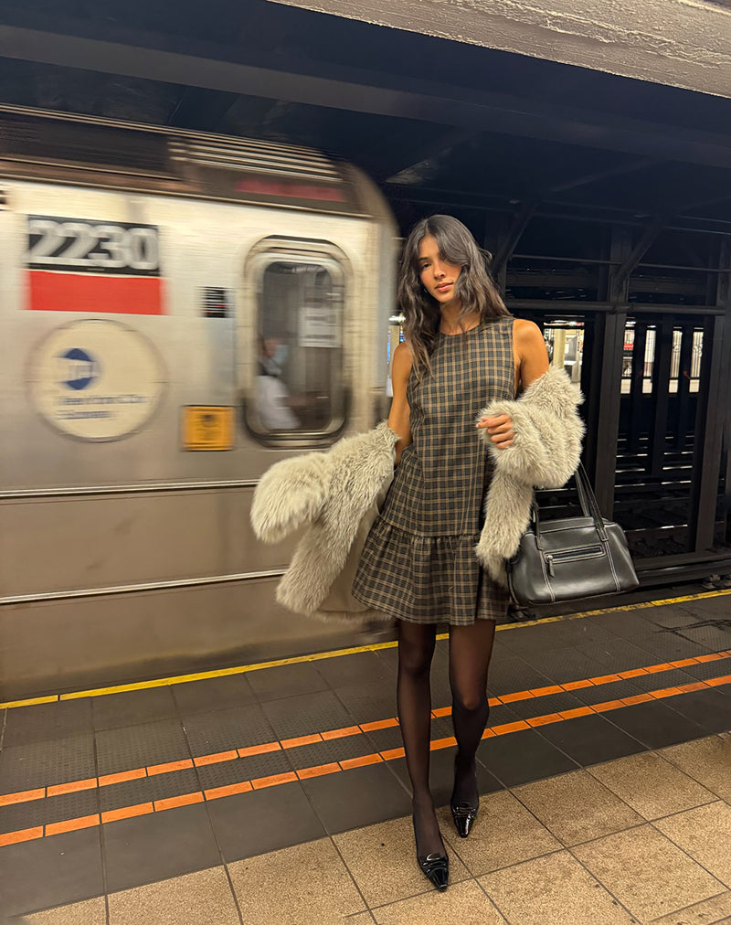 Samana Babydoll Mini Dress in Check Dark Brown