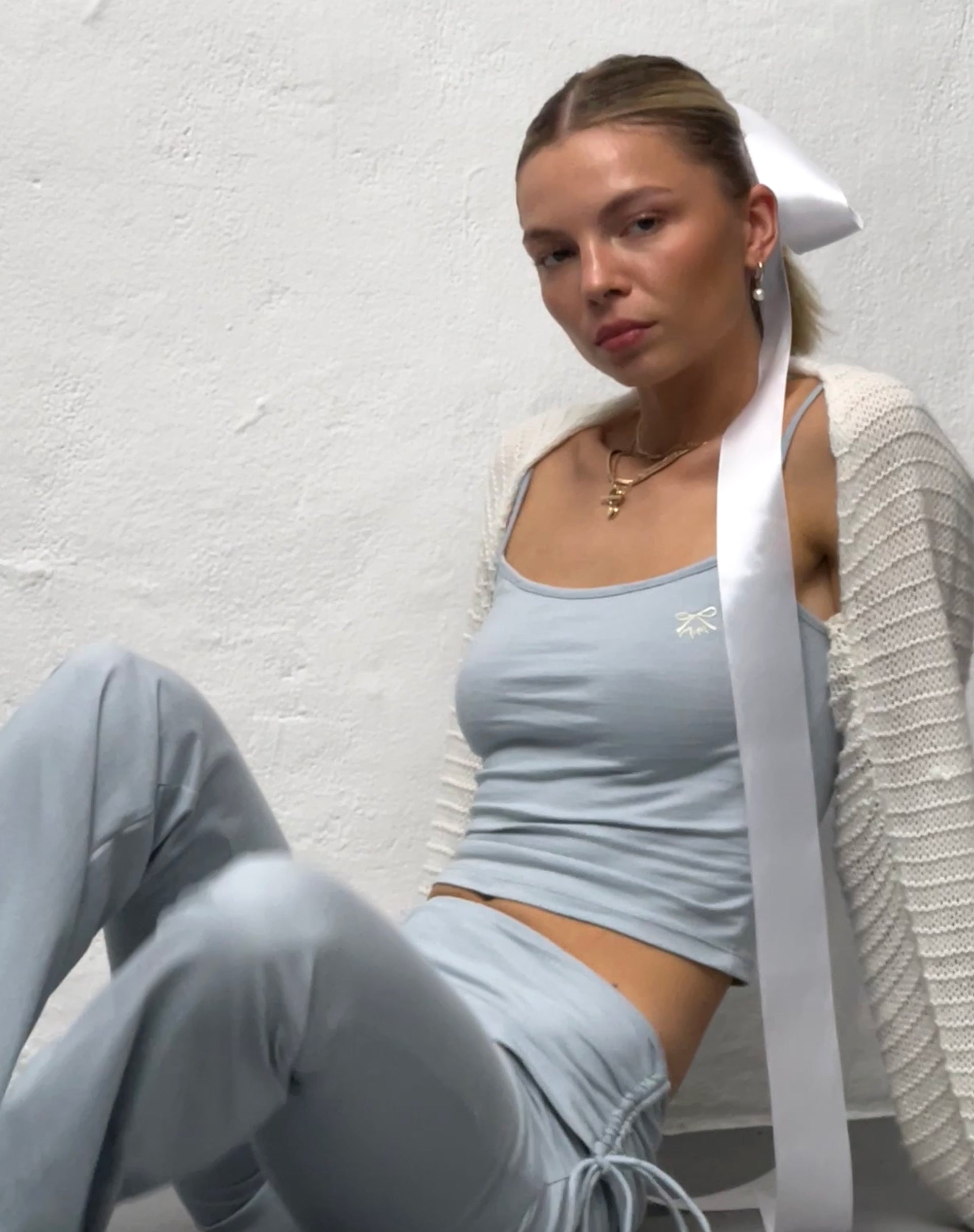 Solay Vest Top in Baby Blue with Ribbon M Embroidery