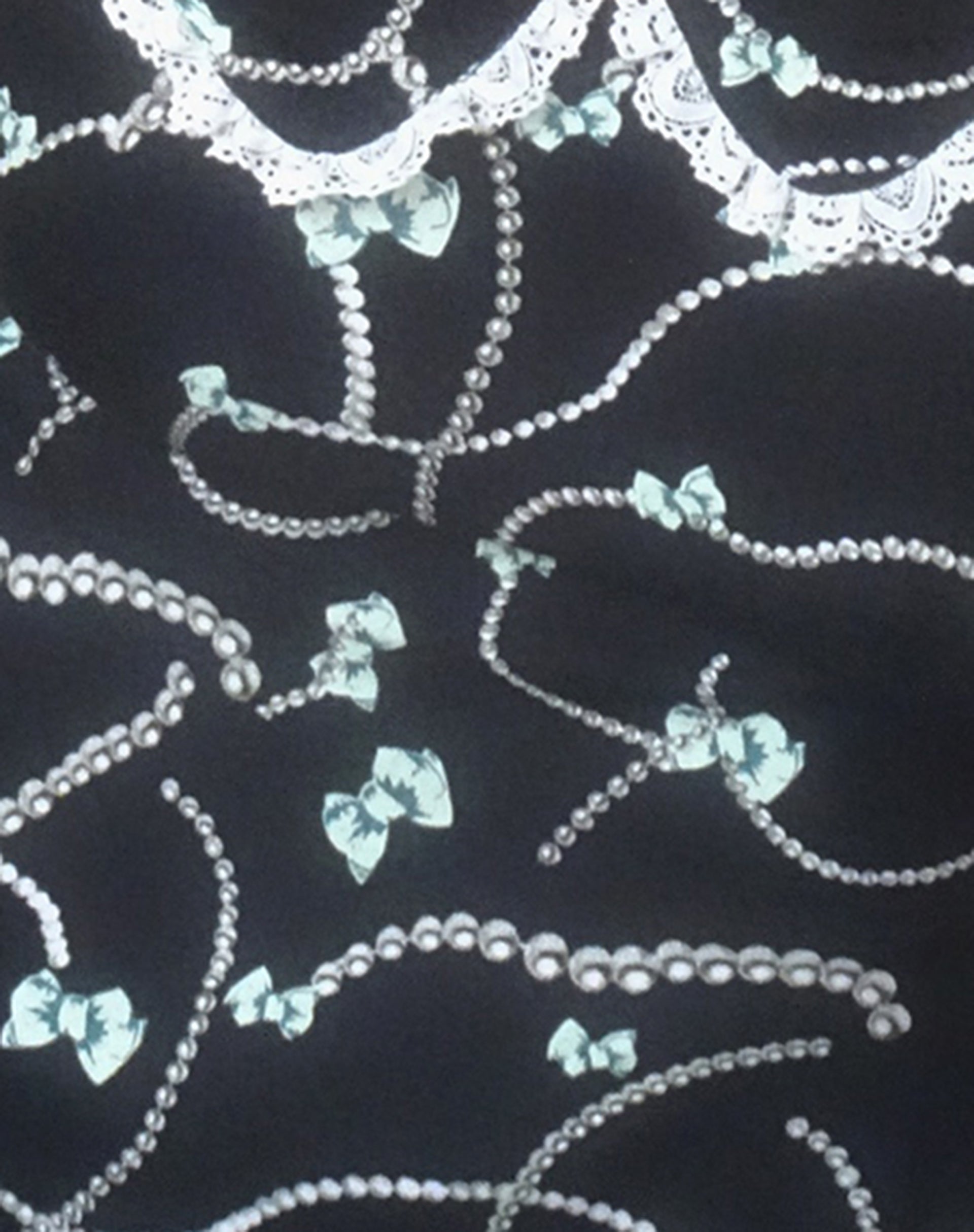 Sulani Mini Dress in Black with Pearl and Bow Print