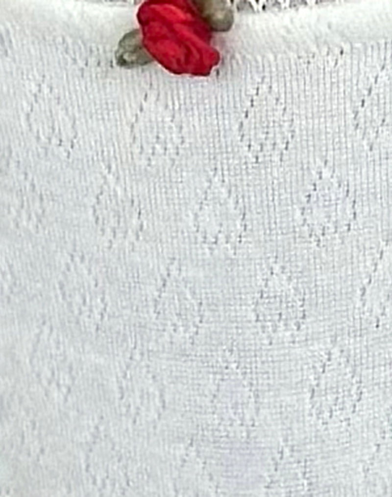 The Yinis Knickers are crafted from soft ivory pointelle fabric, featuring a delicate picot trim and a sweet red rose accent at the centre. Pair with our matching Yanas bra.