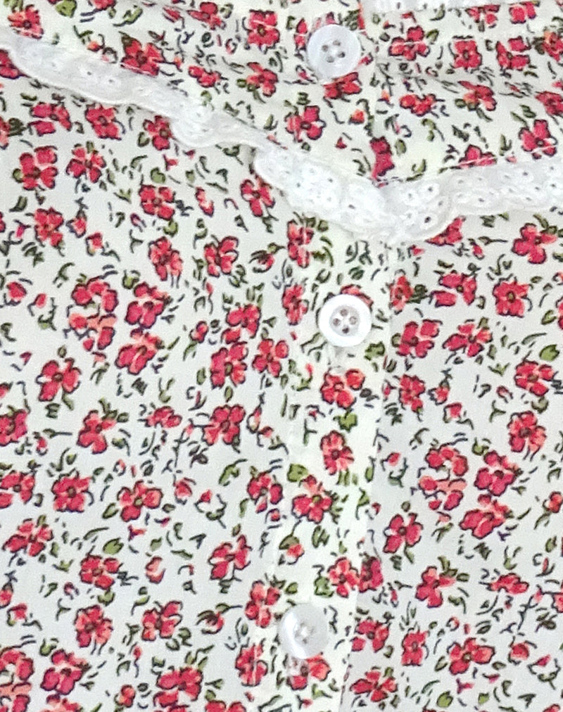 The Zarinata top in printed ditsy SSR fabric. Features a straight neckline with a broderie trim along the straps, over the bust and neckline and a button placket CF. Complete the look with our classic Parallel jeans.