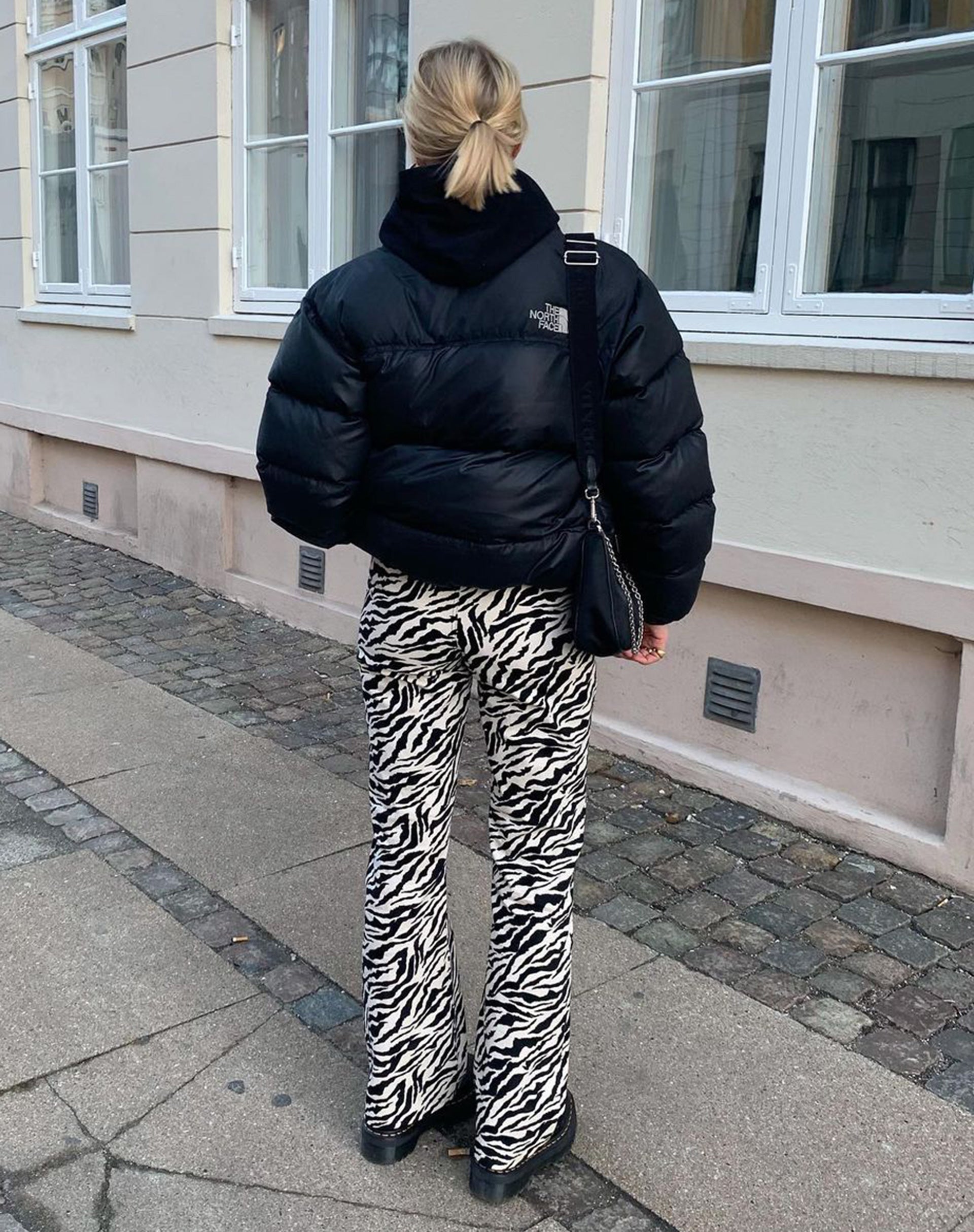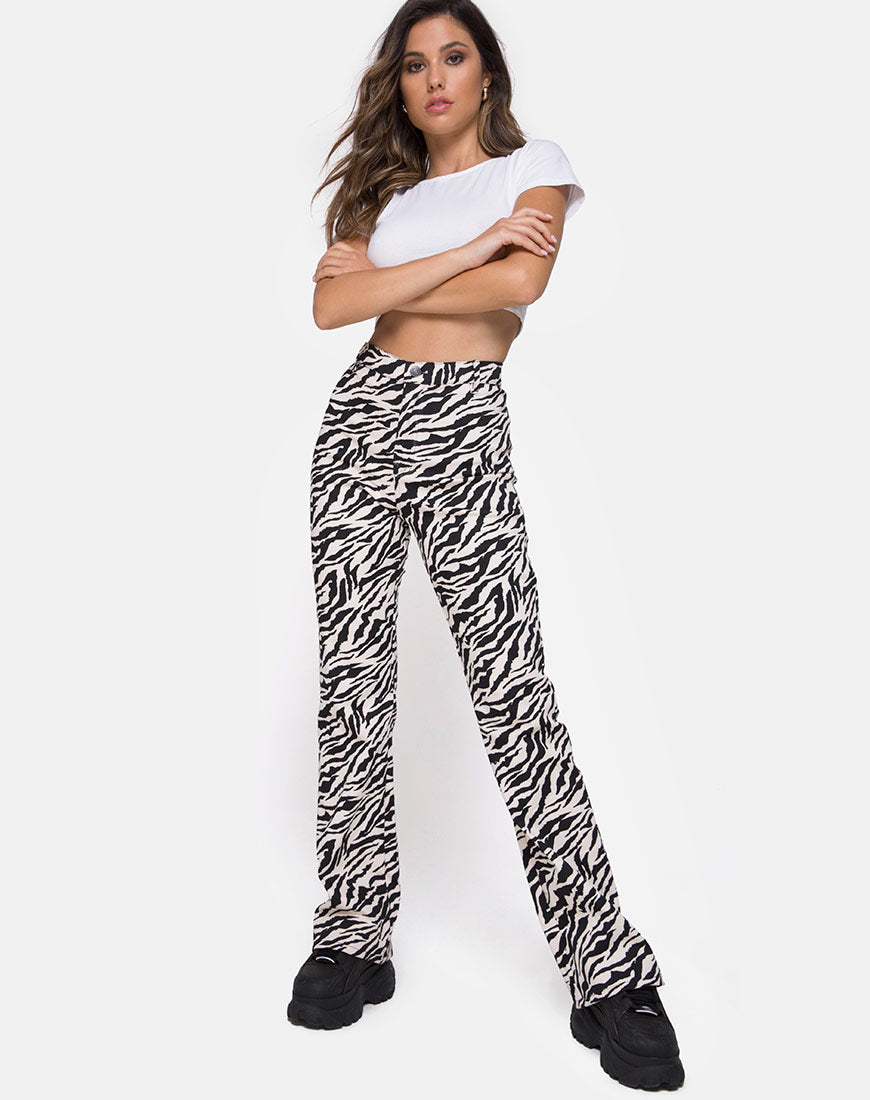 ZOVEN TROUSER 90S ZEBRA BW PRINT 98% COTTON 2% SPANDEX